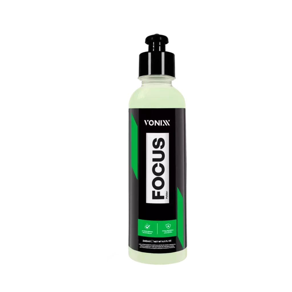 FOCUS é um potente removedor de marcas d'água em vidros e espelhos. O produto é eficaz na remoção de marcas d'água em vidros automotivos, boxes de banheiro, espelhos ou qualquer tipo de vidro, sem risco de causar manchas. Ao contrário de produtos ácidos, ele possui um pH equilibrado e pode ser utilizado com total segurança.