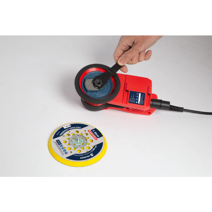 Lixadeira roto orbital desenvolvida para o lixamento sem pó, podendo ser utilizada em alvenaria, madeira, metal e gesso. Equipamento leve e compacto, equipado com motor brushless (sem escovas), que mantém sua velocidade mesmo submetida a elevadas cargas de trabalho, proporciona maior vida útil se comparada a equipamentos com escovas e é muito mais silenciosa. A lixadeira AT1701 possui seletor para 7 diferentes velocidades, vem equipada com pad de lixamento de 150mm (6”), com órbita/oscilação de 5mm. O pad possui múltiplas furações, que proporcionam maior capacidade de sucção do pó.