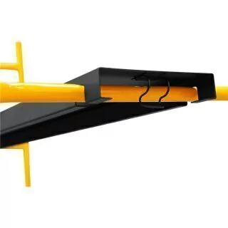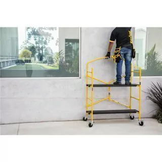 Possui barra de segurança que ajuda o operador a manter o equilíbrio, diminuindo o risco de quedas. Estrutura dobrável para facilitar o transporte e armazenamento. Conta com plataformas em aço com pintura antiderrapante e estrutura pintada a pó, que garante maior durabilidade.