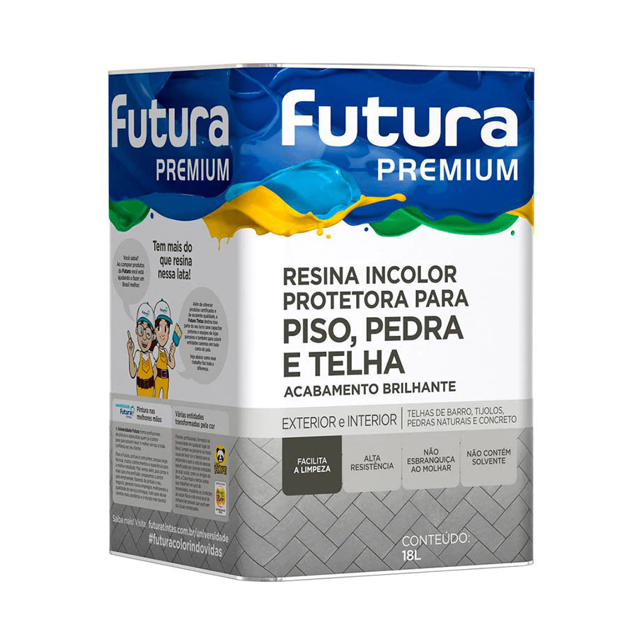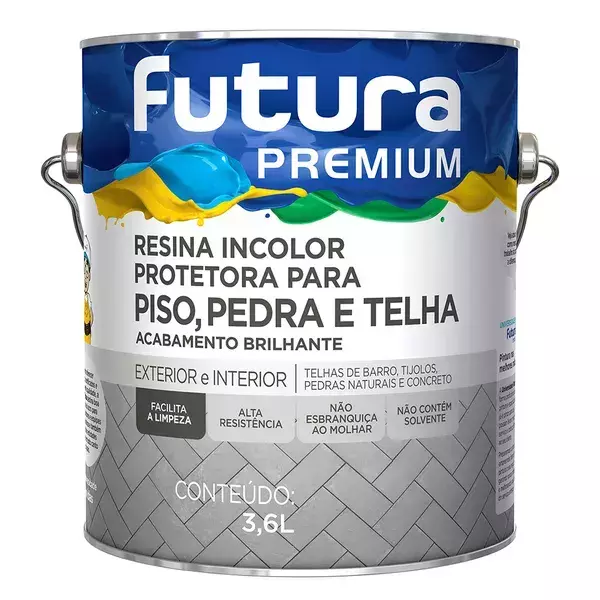 A RESINA INCOLOR PROTETORA PARA PISO, PEDRA E TELHA FUTURA PREMIUM possui um acabamento brilhante e impecável em pisos, pedras e telhas sem aquelas marcas esbranquiçadas indesejáveis na película.