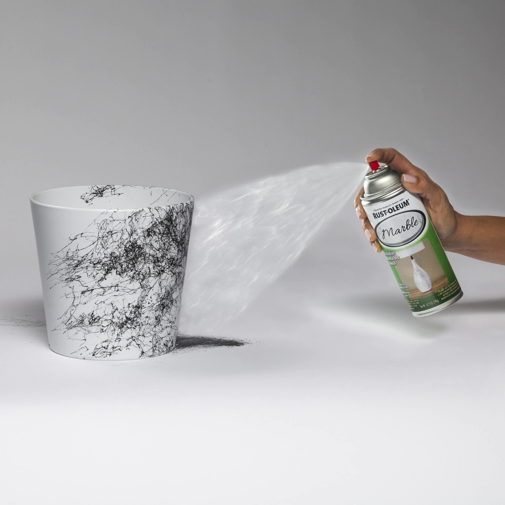 Rust-Oleum® tinta spray Efeito Mármore cria um efeito de mármore em questão de minutos. Esta tinta spray exclusiva imita a aparência de mármore com veios em uma textura em relevo semelhante a teias de aranha.